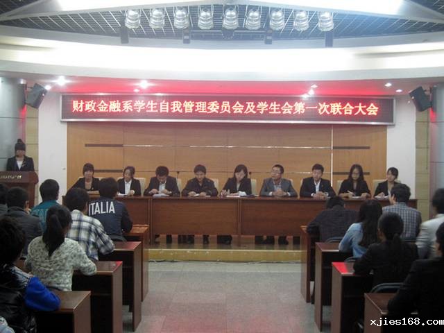 (通讯员 刘晓娟)为了更有效地开展新学期学管会及学生会的工作,财政金融系于10月10日在坤元楼多功能厅召开了2011-2012学年第一学期学生自我管理委员会及学生会第一次联合大会。财政金融系辅导员龚晶老师、张伟老师、马书军老师出席会议,财政金融系学管会及学生会全体成员参加了本次会议。