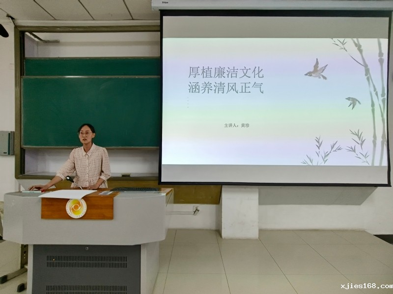 活动伊始,辅导员亓晶向大家介绍了“廉洁与腐败”,对二者进行了明确的论述。她以白居易怒打行贿人与祁黄羊荐官的故事来进一步加深大家对廉洁的理解,提及腐败时,又介绍到了腐败的三种形式:权钱交易、权色交易、权权交易。她还通过校园中不廉洁的现象让同学们引以为戒,包括但不限于考试作弊、生活奢侈、骗取或恶意拖欠国家助学贷款以及学生干部作风腐化等等。辅导员黄珍向大家辨析了“廉洁”与“廉政”二者的关系,她指出其实廉政是廉洁的重要内容,但是廉政不等于廉洁。紧接着,通过一系列小视频让同学们更深入的认识到共塑廉洁校园的重要性。最后,她表示希望新时代的青年可以勇于担当责任,做到廉洁修身扬清风。