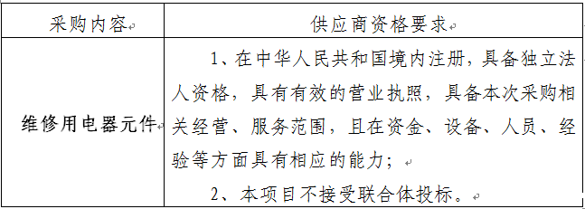 二、采购项目名称:世界杯直播在线观看维修用电器元件采购项目。